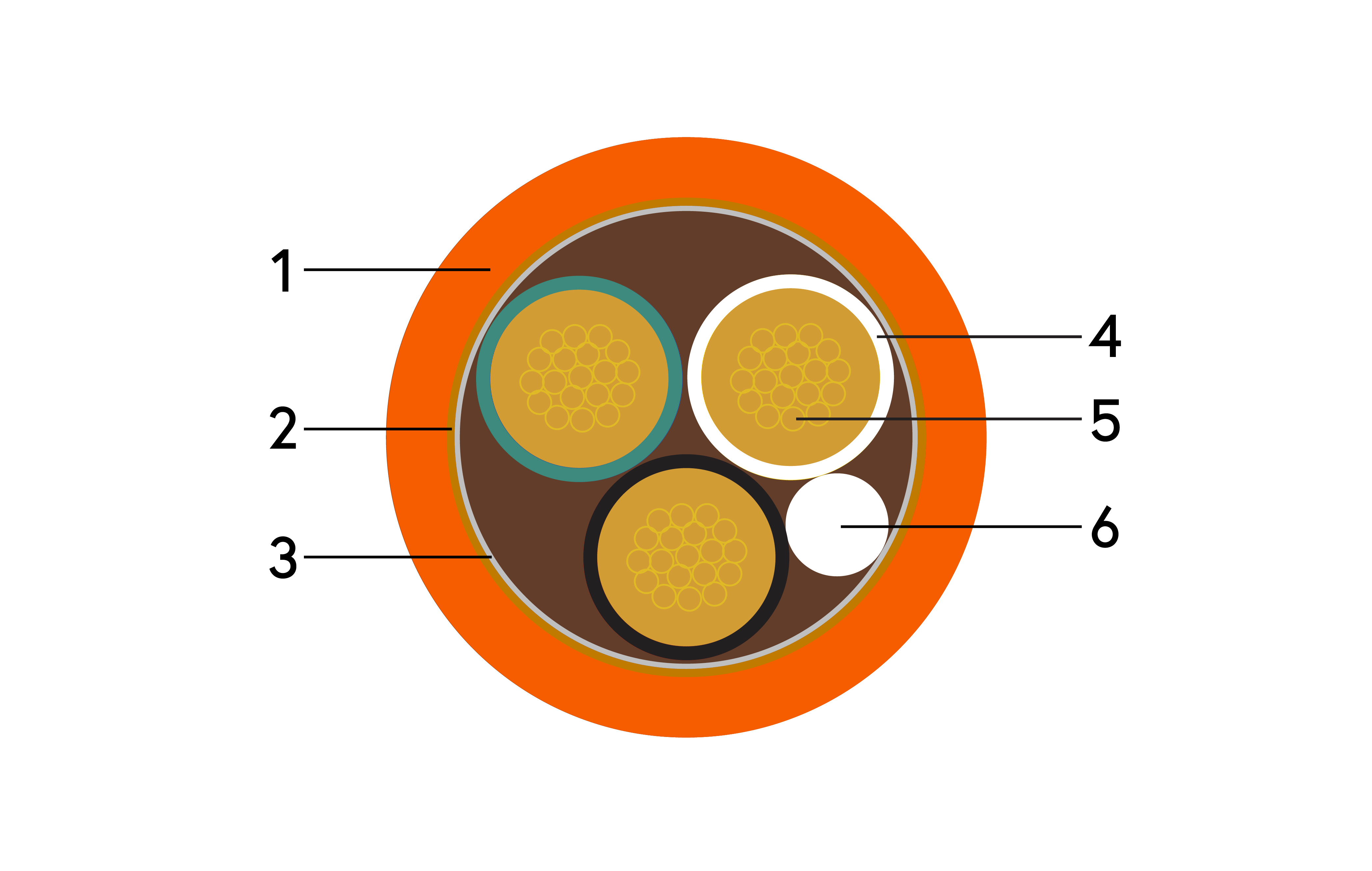 | Izolacja | Pojedyncza: PVC (6 mm) dla każdego przewodnika |